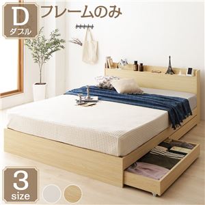 モダン ベッド 収納付き 引き出し付き 木製 カントリー 棚付き 宮付き コンセント付き シンプル モダン ナチュラル ダブル ベッドフレームのみ送料無料
