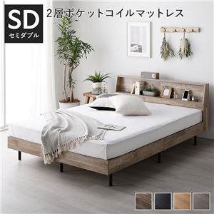Office168厳選ベッド セミダブル 2層ポケットコイルマットレス付き グレージュ 頑丈 すのこ 棚付き コンセント付き 高さ調整可 耐荷重650kg 木製送料無料