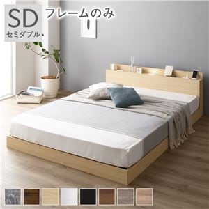 シンプル モダン 低床 ロータイプ すのこ 木製 ベットLED照明付き 棚付き 宮付き コンセント付き ナチュラル セミダブル ベッドフレームのみ送料無料