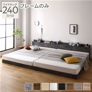 つなげて眠れる連結 ベッド ワイドキング 240(S+D) ベッドフレームのみ ストーングレー 低床 連結 すのこ 照明 棚付 宮付 コンセント送料無料