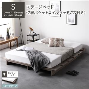シンプル ゆとりデザイン 開放感のロースタイルステージベッドステージタイプ シングル 2層ポケットコイルマットレス付き グレージュ 〔 フレーム:幅120cm マットレス:幅97cm 〕 送料無料