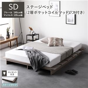 シンプル ゆとりデザイン 開放感のロースタイルステージベッドステージタイプ セミダブル 2層ポケットコイルマットレス付き グレージュ 〔 フレーム:幅140cm マットレス:幅120cm 〕 送料無料