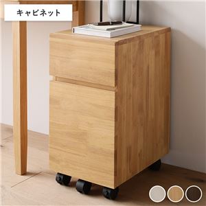 Office168天然木 デスクシリーズ キャビネット 単品 ラテホワイト 引出し付き キャスター付き 収納家具 収納ワゴン 袖机 完成品送料無料