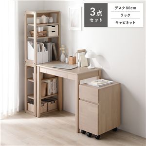 Office168天然木 デスクシリーズ 3点セット 〔 デスク 80cm幅 + ラック + キャビネット 〕 ラテホワイト デスクセット 引出し付き 組立品送料無料