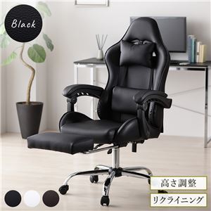 office168厳選 チェア ブラック ゲーミング オフィス パソコン 学習 椅子 頑丈 リクライニング ハイバック ヘッドレスト フットレスト レザー送料無料