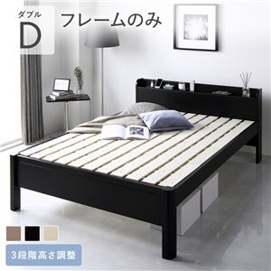 新生活応援 ベッド ダブル ベッドフレームのみ グレージュ 頑丈 すのこ 棚付き コンセント付き 高さ調整可 耐荷重650kg 木製送料無料