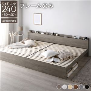 Office168厳選ベッド ワイドキング 240(SD+SD) ベッドフレームのみ グレージュ 連結 高さ調整可 棚付 コンセント付 すのこ送料無料