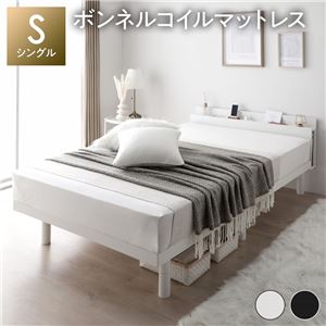 ベッド ホワイト シングル ボンネルコイルマットレス付き すのこ 棚付き コンセント付き スマホスタンド 頑丈 木製 シンプル モダン ベッド下収納送料無料