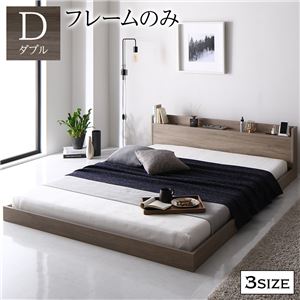 ベッド ダブル ベッドフレームのみ グレージュ 低床 ロータイプ 宮付き 棚付き コンセント付き シンプル すのこ 木製送料無料