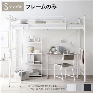 おしゃれ シングル 異素材MIXデザイン ロフトベットシングル ベッドフレームのみ ホワイト ベッド スチール 頑丈 宮付き コンセント付 送料無料