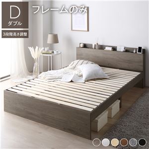 モダン ベッド ダブル ベッドフレームのみ グレージュ 高さ調整可 棚付き 宮付き コンセント付き すのこ送料無料