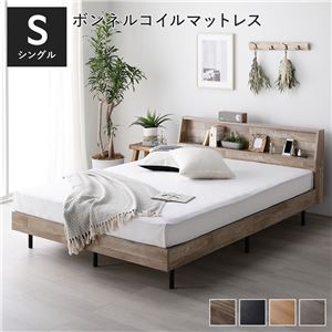 ベッド シングル ヴィンテージナチュラル ボンネル コイルマットレス付き 機能性×スタイリッシュ 細脚のデザイン すのこ 棚付き 宮付き 宮棚付き コンセント付き送料無料