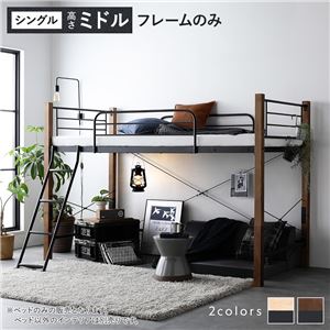 おしゃれ シングル 異素材MIXデザイン ロフトベット〔 シングル ミドルタイプ ベッドフレームのみ ブラウン×ブラック 〕 スチール 頑丈送料無料