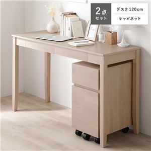 Office168天然木 デスクシリーズ 2点セット 〔 デスク 120cm幅 + キャビネット 〕 ナチュラル デスクセット 学習机 引出し付き 組立品送料無料