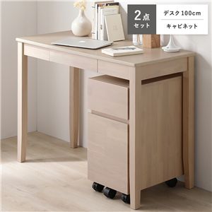 Office168天然木 デスクシリーズ 2点セット 〔 デスク 100cm幅 + キャビネット 〕 ナチュラル デスクセット 学習机 引出し付き 組立品送料無料