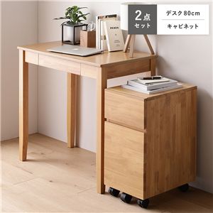 Office168天然木 デスクシリーズ 2点セット 〔 デスク 80cm幅 + キャビネット 〕 ナチュラル デスクセット 学習机 引出し付き 組立品送料無料