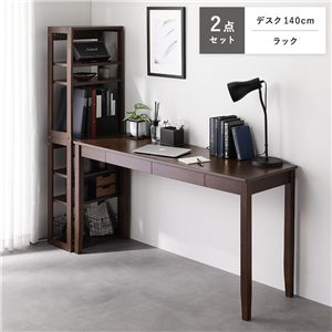 Office168天然木 デスクシリーズ 2点セット 〔 デスク 140cm幅 + ラック 〕 ブラウン デスクセット 学習机 引出し付き 組立品送料無料