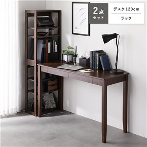 Office168天然木 デスクシリーズ 2点セット 〔 デスク 120cm幅 + ラック 〕 ブラウン デスクセット 学習机 引出し付き 組立品送料無料