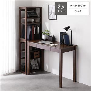 Office168天然木 デスクシリーズ 2点セット 〔 デスク 100cm幅 + ラック 〕 ブラウン デスクセット 学習机 引出し付き 組立品送料無料