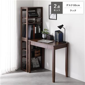 Office168天然木 デスクシリーズ 2点セット 〔 デスク 80cm幅 + ラック 〕 ブラウン デスクセット 学習机 引出し付き 組立品送料無料