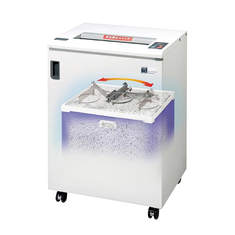 | 仕様 | 投入幅(対応用紙サイズ):410mm(CP) 細断方式:クロスカット 細断寸法:約3×27mm 最大細断枚数(50/60Hz):約27/25枚 定格細断枚数(50/60Hz):約16/14枚 電源:100V・50/60Hz 定格消費電力(50/60Hz):540/620W |
