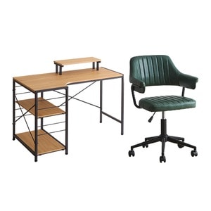 オフィスイロハoffice168厳選 デスクチェア セット パソコンデスク約幅110cm シャビーオーク オフィスチェア グリーン ガス圧昇降 キャスター付き 組立品送料無料