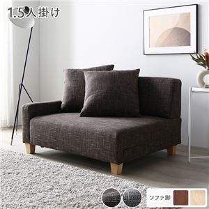 Office168ローソファ 1.5人掛け 単品 アッシュグレー 脚:ナチュラル コンパクト 肘付き クッション ローソファ 組立品送料無料