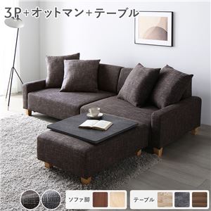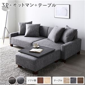 Office168ソファセット ビッグカウチ 〔 3人掛け アッシュグレー 脚:ブラウン オットマン付 テーブルトレイ ストーン 〕 ローソファ 組立品送料無料